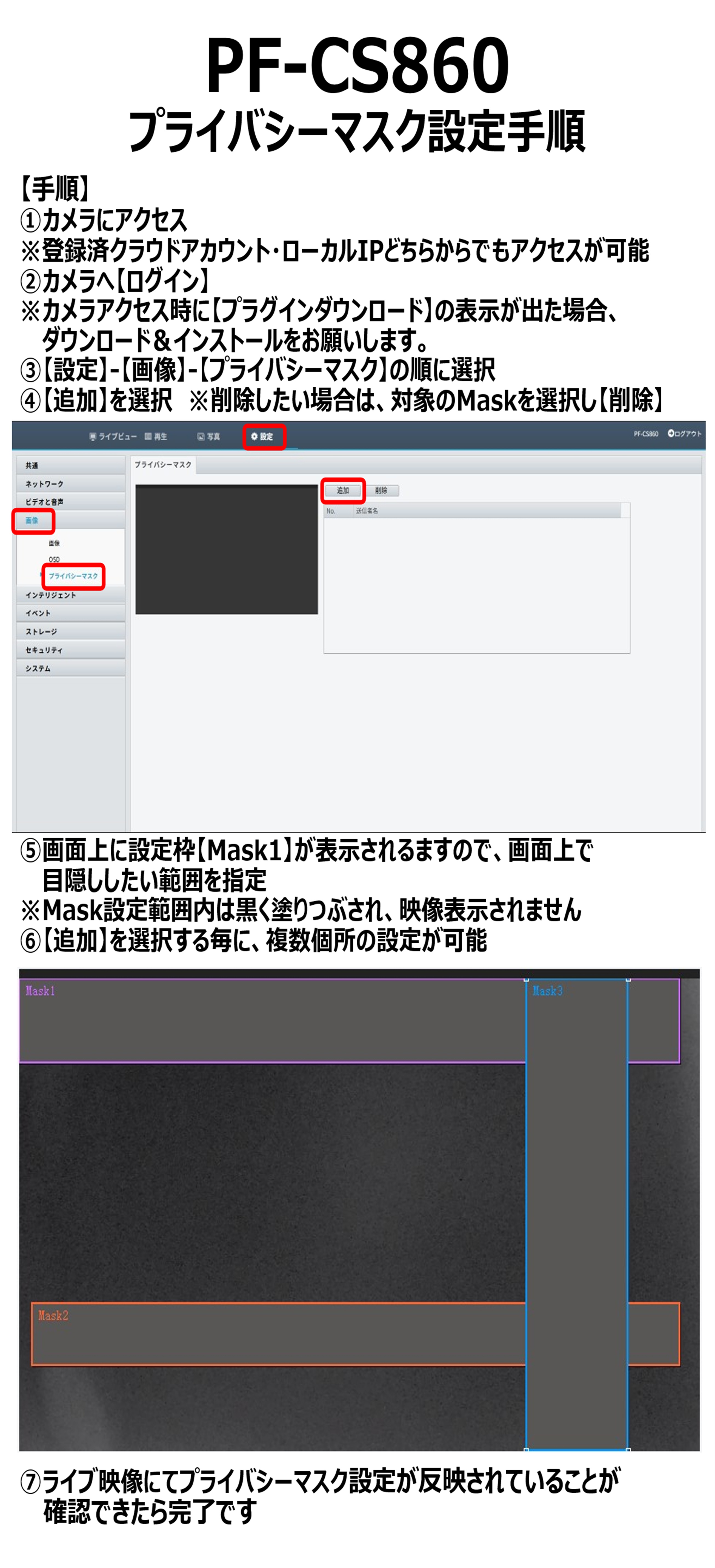 ※Mask設定範囲内は黒塗りつぶしとなり映像が表示されない