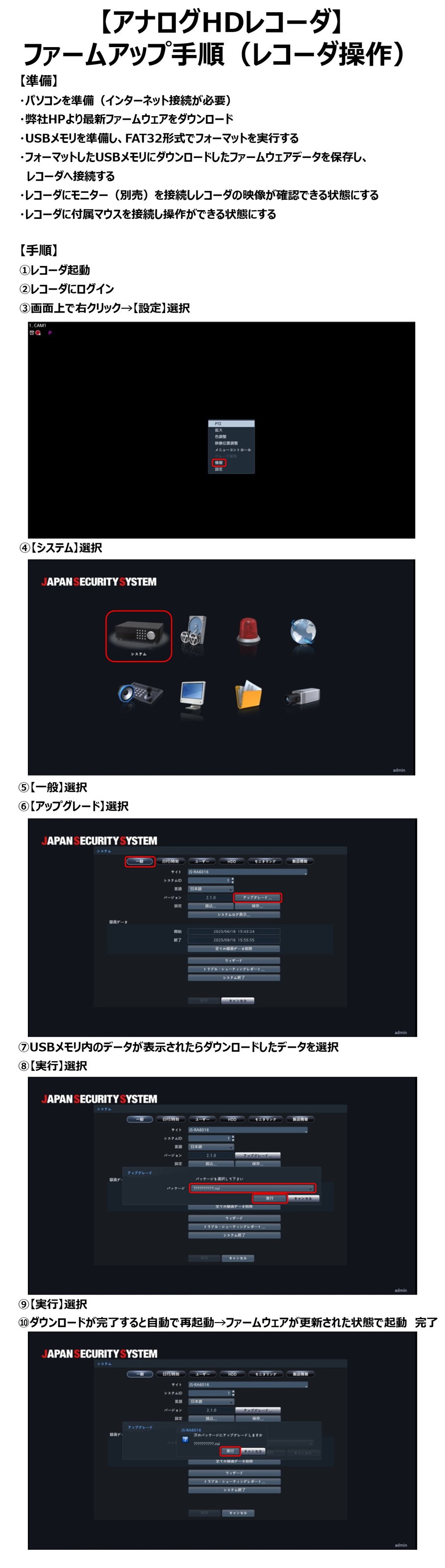 ・USBメモリを準備し、FAT32形式でフォーマットを実行する ※フォーマット手順はこちら