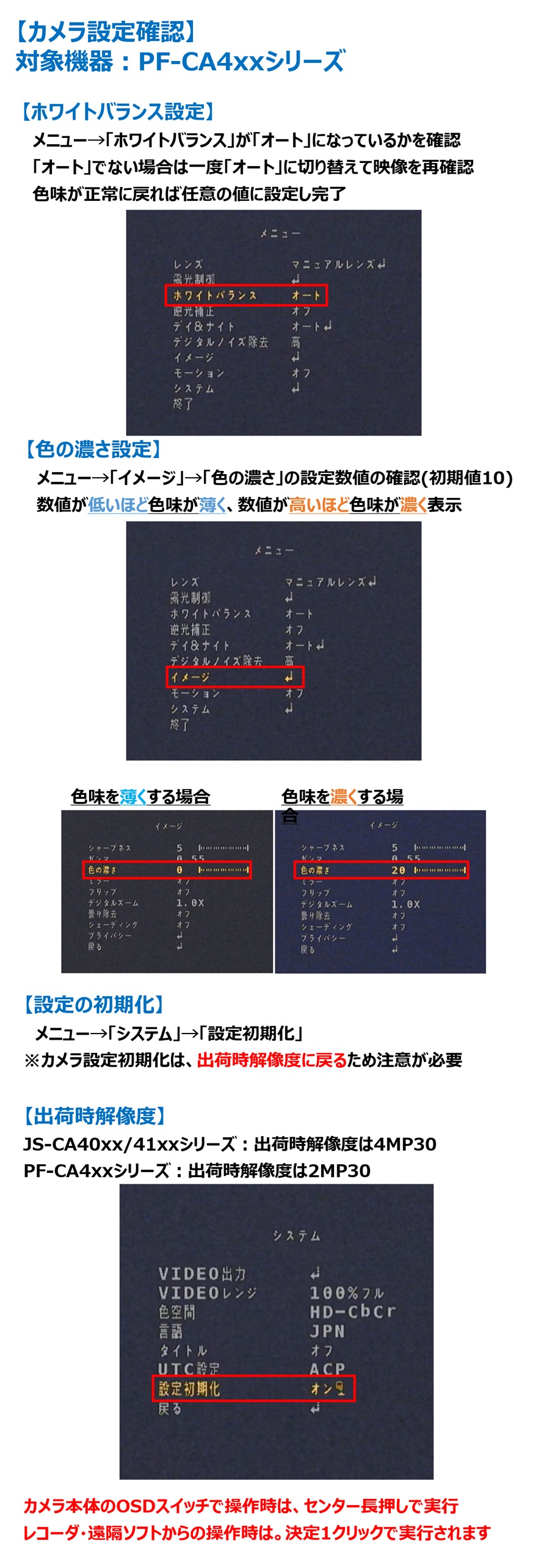・カメラ設定の初期化